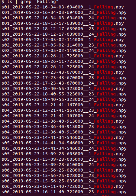 파이프라인을 통해 ls의 결과물을 grep으로 넘겨 Falling 라베렝 해당하는 데이터셋의 이름만 출력했다.