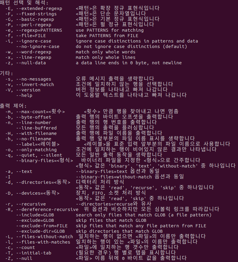 > grep -w "ABC" example.txt // 단어단위로 검색