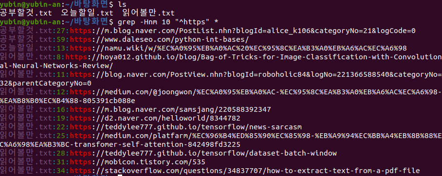 grep을 이용해 간단하게 링크와 위치를 찾아보았다.