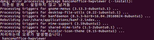 이 경우, 우선 dpkg를 통해 반쯤 설치한 hwpviewer 파일을 삭제해야 한다.