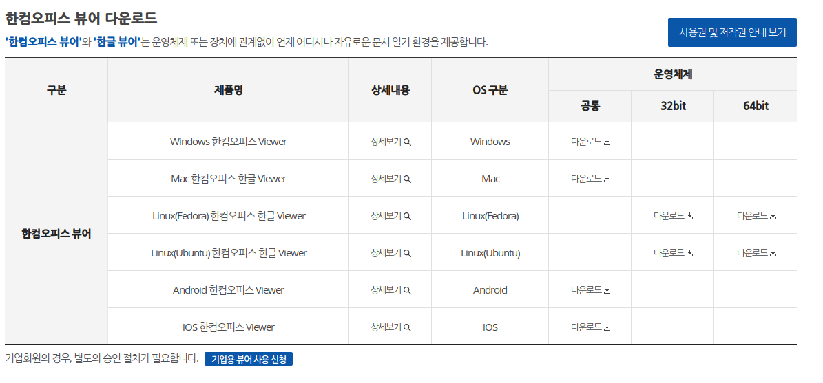 한글과컴퓨터는 기본적으로 홈페이지에서 한글 뷰어를 제공한다.
