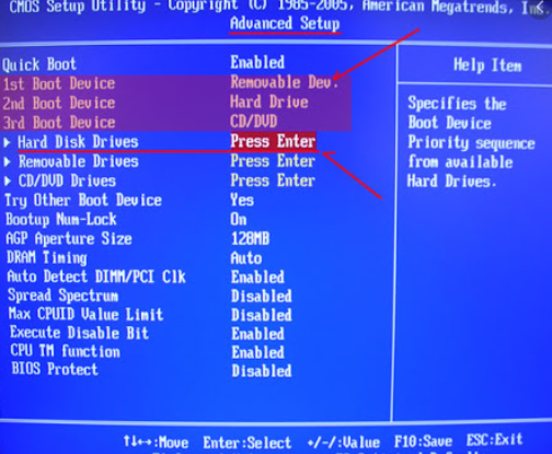 설치할 컴퓨터의 바이오스에 들어가서 부팅디스크를 교체해준다.