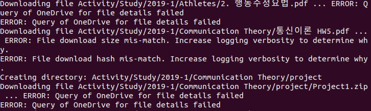 이렇게 명령해주면 원드라이브에 있는 내용을 받아올 수 있다.